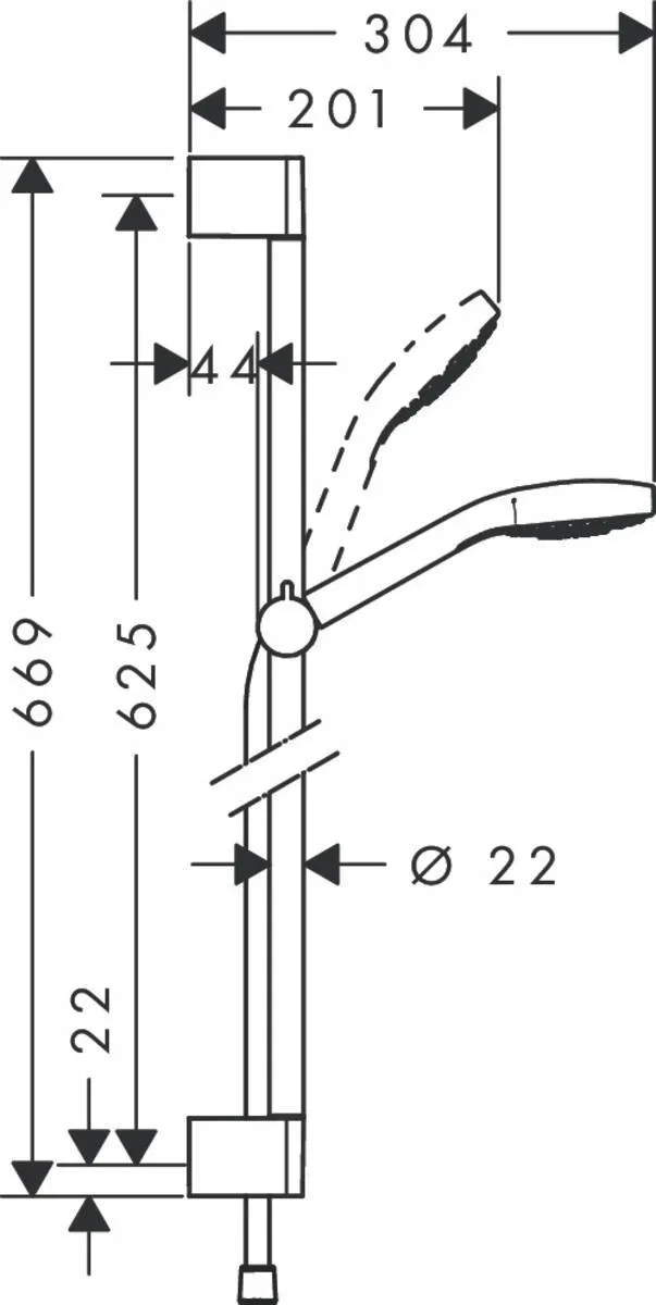 Cостоит из: ручной душ, душевая штанга, шланг для душа, ползунок размер душевого диска: 110 мм Тип струи: массажная, SoftRain, IntenseRain удобное переключение типов струи с помощью кнопки Select со стороны душа упорный подшипник, предотвращающий перекручивание душевого шланга угол наклона может изменяться до 45° максимальный расход воды при 3 бар: 9 л/мин хромированные настенные крепления из пластика