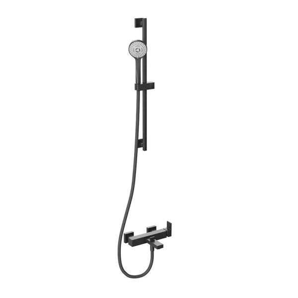 Душевой гарнитур Kerama Marazzi Futura 851KM.01.093 в матовом черном цвете — это смелое и современное решение для организации душевого пространства в стиле лофт. Модель выделяется уникальным сочетанием квадратных форм и круглой лейки диаметром 22,5 см, что создает выразительный контраст и подчеркивает её индивидуальность. Гарнитур изготовлен из качественного пластика и нержавеющей стали, что обеспечивает устойчивость к коррозии и долговечность даже в условиях повышенной влажности.