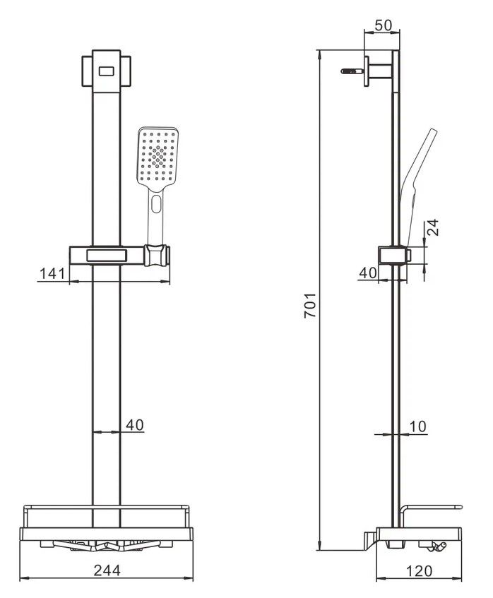 Душевой гарнитур Rose R159, хром.В состав коплекта входят:душевая штанга,полочка,душевая лейка,держатель лейки,шланг.