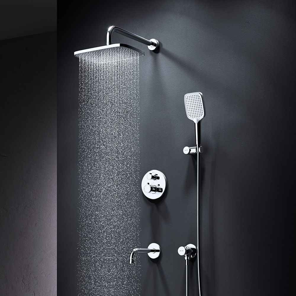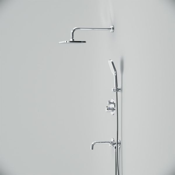 Набор встроенного оборудования X-Joy - идеальное решение для вашей ванной комнаты. Встроенный механизм освобождает ванную комнату от лишних деталей  превращая пространство в идеальное место для себя. Набор включает в себя: верхний тропический душ 21x30 см, ручной душ, держатель ручного душа и смеситель.