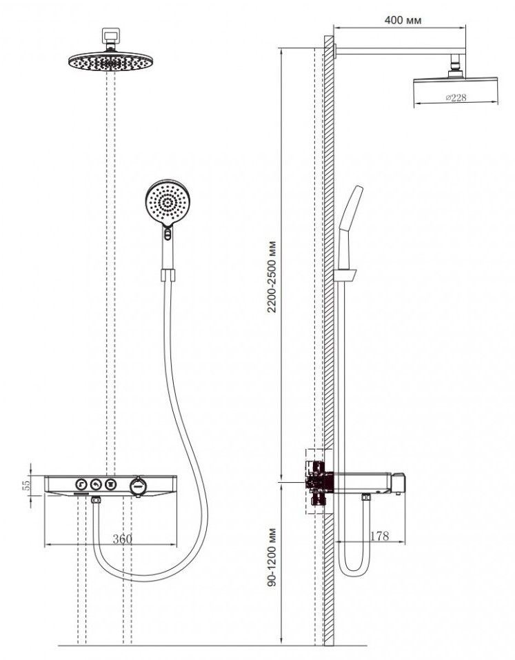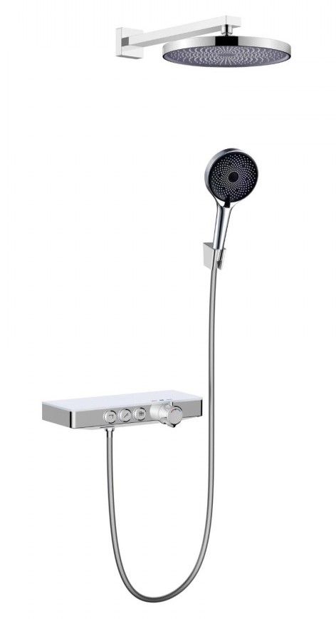 Душевой комплект BERGES MORANS - встраиваемый душевой комплект обладает трёхрежимной системой и включает в себя: Верхний Душ «Тропический ливень», Ручной Душ и Излив для наполнения ванны.Система оборудована термостатическим управлением, что позволяет поддерживать комфортную и неизменную температуру воды, а так же оберегает от ожогов.Верхний душ диаметром 25 см обеспечивает комфортное принятие SPA процедур, держатель верхнего душа имеет размер вылета из стены 40 см.Шланг для Ручного Душа выполнен из мягкого пластика длиной 150 см, что обеспечивает долгий срок службы, а так же гибкость, необходимую, для удобного применения.Форма корпуса смесителя выполнена в виде полочки из закаленного стекла, позволяя комфортно хранить необходимые принадлежности для душа.Трехфункциональный термостатВстраиваемая системаЛатунный корпусСталинитовая пластина и пластиковая крышка для защиты от ожоговДушевой шланг 150 см из ПВХМатериал держателя верхнего душа: нержавеющая стальНасадка верхнего душа диаметром 25см, ABS пластикВылет верхнего душа: 40 смМатериал ручного душа: ABS пластикСистема против известковых отложенийСтандарт подводки: 1/2"Кол-во режимов ручного душа: 3