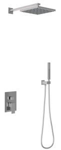 Душевой комплект BERGES NARDIS 2S - встраиваемый душевой комплект обладает двухрежимной системой и состоит из верхней лейки - «тропического ливня», ручного душа и смесителя. Лейка верхнего душа имеет инновационную систему самоочистки в виде гибких силиконовых вставок на форсунках душа, которые защищают изделие от известковых отложений. Изготовлены оба душа из ABS пластика, имеют хромоникелевое покрытие, которое выглядит безупречно на протяжении всего периода эксплуатации. Шланг выполнен из нержавеющей стали (внутри epdm), смеситель с латунным корпусом имеет керамический картридж с пропускной способностью 28 л/мин, все держатели и кронштейны сделаны из латуни и нержавеющей стали.Скрытый монтаж комплекта позволяет создавать красивое и эргономичное внутреннее пространство всего помещения.