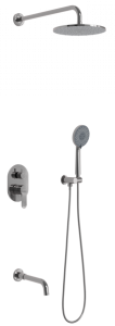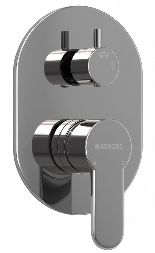Душевой комплект BERGES - встраиваемый душевой комплект обладает двухрежимной системой и состоит из верхней лейки - «тропического ливня», ручного душа и смесителя. Лейка верхнего душа имеет инновационную систему самоочистки в виде гибких силиконовых вставок на форсунках душа, которые защищают изделие от известковых отложений. Изготовлены оба душа из ABS пластика, имеют хромоникелевое покрытие, которое выглядит безупречно на протяжении всего периода эксплуатации. Шланг выполнен из нержавеющей стали (внутри epdm), смеситель с латунным корпусом имеет керамический картридж с пропускной способностью 28 л/мин, все держатели и кронштейны сделаны из латуни и нержавеющей стали.Скрытый монтаж комплекта позволяет создавать красивое и эргономичное внутреннее пространство всего помещения.
