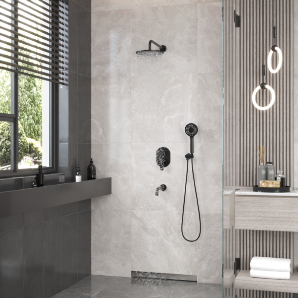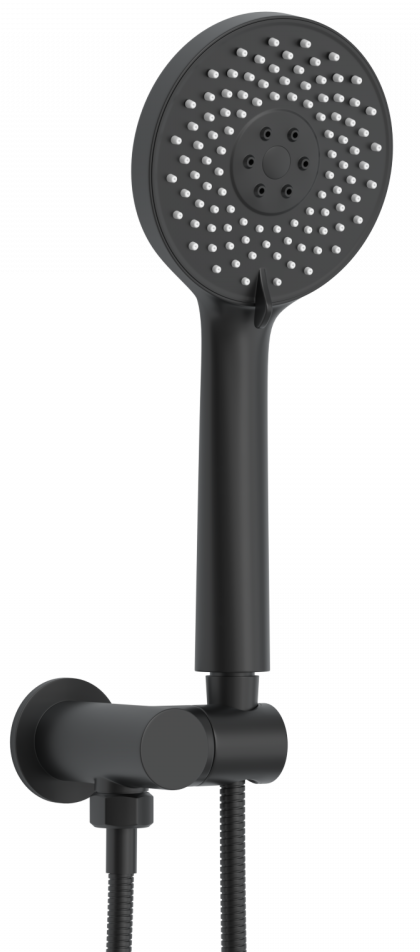 Душевой комплект BERGES VENTAS 2R BLACK - встраиваемый душевой комплект обладает двухрежимной системой и состоит из верхней лейки - «тропического ливня», ручного душа и смесителя.Лейка верхнего душа имеет инновационную систему самоочистки в виде гибких силиконовых вставок на форсунках душа, которые защищают изделие от известковых отложений. Изготовлен верхний душ из нержавеющей стали. Ручной душ – из ABS пластика. Оба душа имеют черное матовое покрытие, которое выглядит безупречно на протяжении всего периода эксплуатации.Шланг выполнен из нержавеющей стали (внутри epdm), смеситель с латунным корпусом имеет керамический картридж с пропускной способностью 28 л/мин, все держатели и кронштейны сделаны из латуни и нержавеющей стали.Скрытый монтаж комплекта позволяет создавать красивое и эргономичное внутреннее пространство всего помещения.