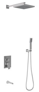 Душевой комплект BERGES VENTAS 3S - встраиваемый душевой комплект обладает трёхрежимной системой и состоит из верхней лейки - «тропического ливня», ручного душа, излива и смесителя.Лейка верхнего душа имеет инновационную систему самоочистки в виде гибких силиконовых вставок на форсунках душа, которые защищают изделие от известковых отложений. Верхний душ изготовлен из нержавеющей стали. Ручной душ – из ABS пластика. Оба душа имеют хромоникелевое покрытие, которое выглядит безупречно на протяжении всего периода эксплуатации.Шланг выполнен из нержавеющей стали (внутри epdm), смеситель с латунным корпусом имеет керамический картридж с пропускной способностью 28 л/мин, все держатели и кронштейны сделаны из латуни и нержавеющей стали.Скрытый монтаж комплекта позволяет создавать красивое и эргономичное внутреннее пространство всего помещения.