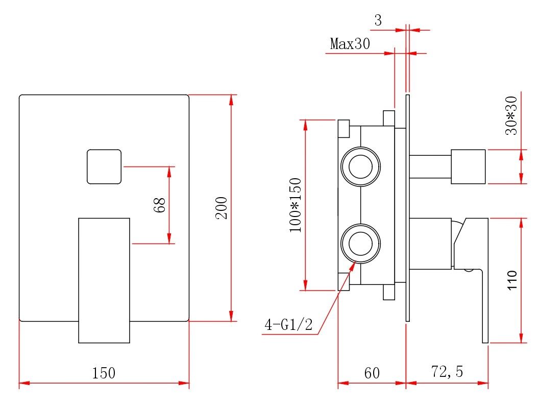 Размер верхнего душа, см:25
