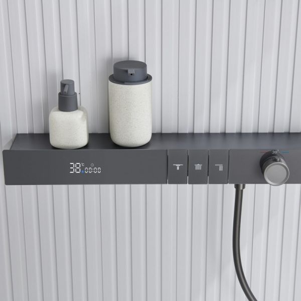 Внутри системы установлен современный LED-дисплей для контроля температуры воды, что делает использование душевой системы еще более удобным и комфортным.