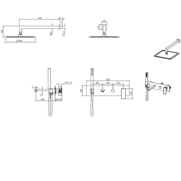 Душевая система Boheme Qubic, Смеситель для ванны с душевым гарнитуром Способ монтажа: встраи... Подробнее