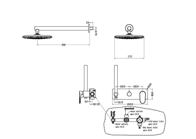 • Верхний душ: 30 см