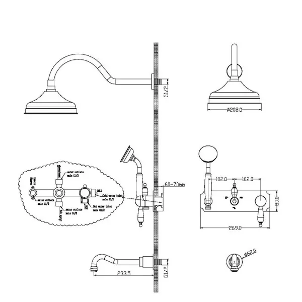 Душевая система Boheme Tradizionale 258, с изливом, верхний душ, ручной душ, цвет золото/черный ... Подробнее
