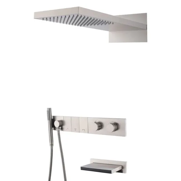 Ультра плоский дизайн, инновационное управление режимами позволит создать идеальный комфорт. Верхний душ размером 550мм*230мм с функцией тропического душа. Форсунки soft-silicone с функцией антикальк и комфортной очисткой. Магнитный держатель лейки Каскадный излив как дополнительная опция. Картридж Sedal, переключатели Neoperl, термостат Vernet (Франция).