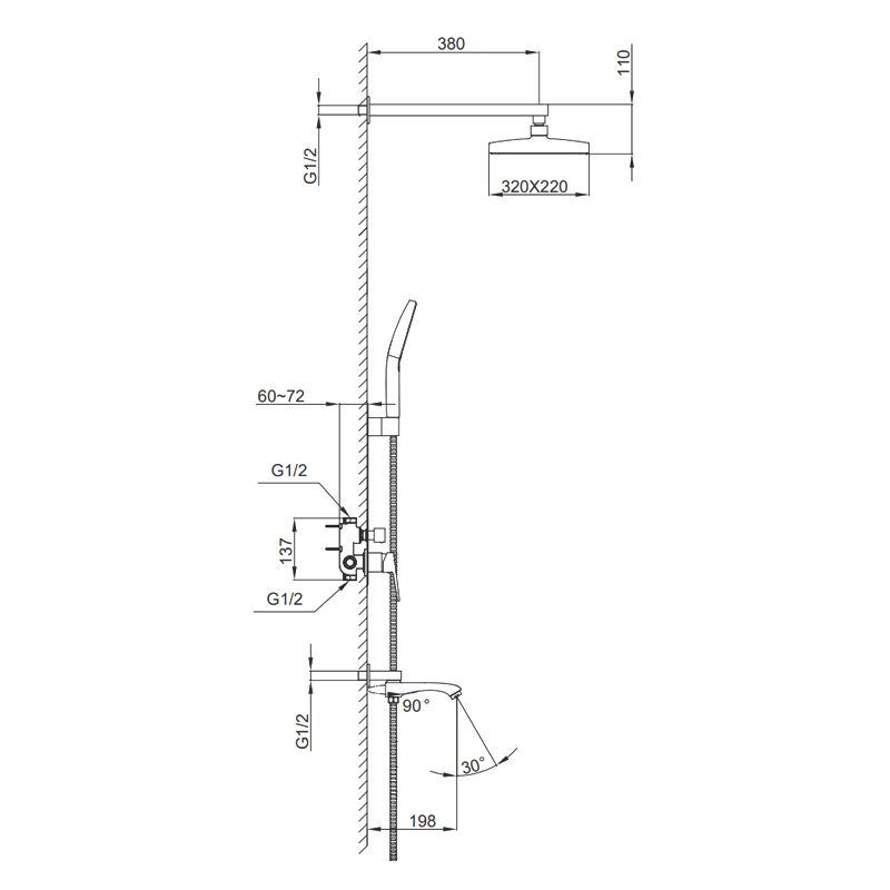 Размер верхнего душа, см:32