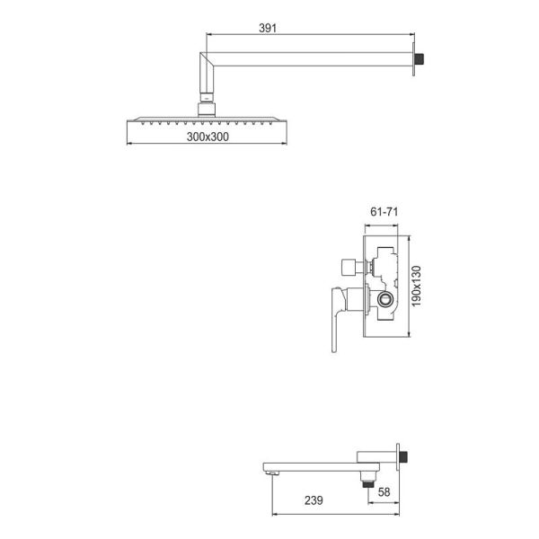Душевая система G7117-3 оснащена шлангом для душа, верхним душем, с настенным держателем, смесителем, аэратором NEOPERL и керамическим картриджем SEDAL 35мм.