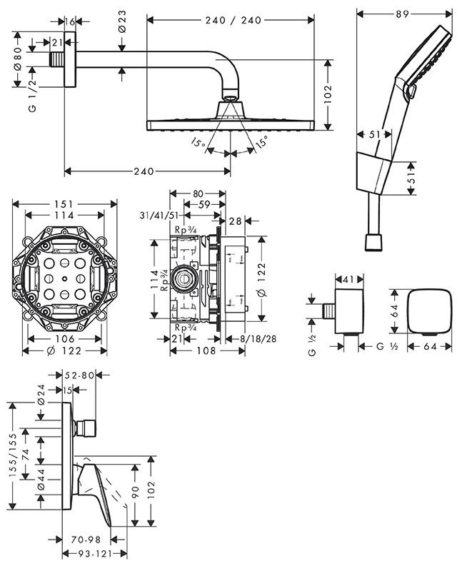 Душевая система скрытого монтажа Hansgrohe Crometta E 240 1jet с однорычажным смесителем, хром, 27957000Состоит из: верхний душ, ручной душ, держатель верхнего душа, однорычажный смеситель для ванны, скрытая часть, настенный вывод, держатель для душа, шланг для душа