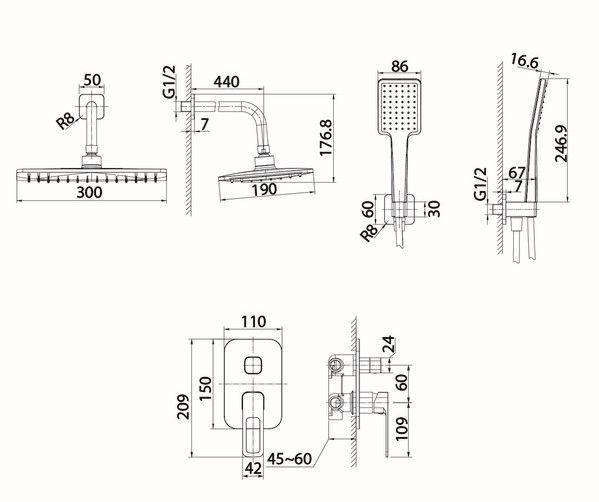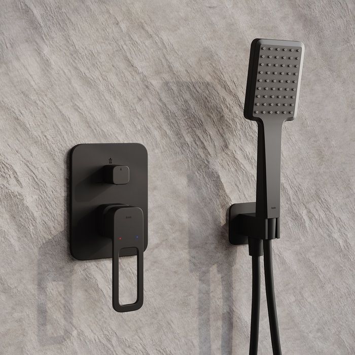 Готовый набор встраиваемой сантехники в стильном черном цвете включает всё необходимое для обустройства комфортной красивой ванной. Так выгоднее и удобнее, чем купить всё по отдельности. Оптимальная подборка сантехники Slide: смеситель, верхняя лейка с кронштейном для тропического душа, ручная лейка, душевой шланг 1,5 м и выход для шланга с держателем для лейки.