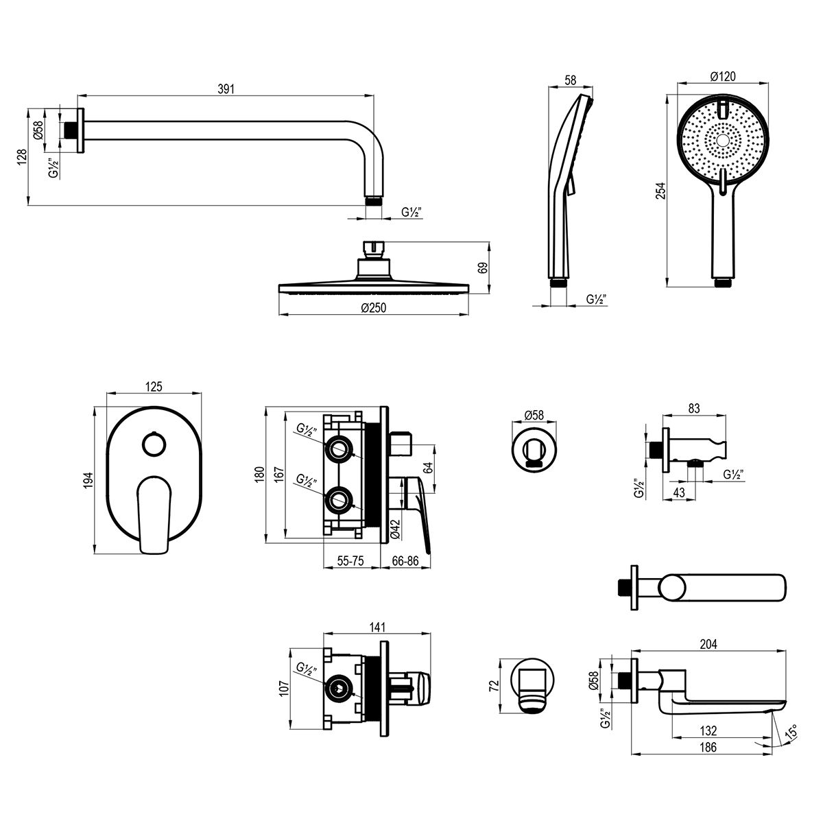 Размер верхнего душа, см:25