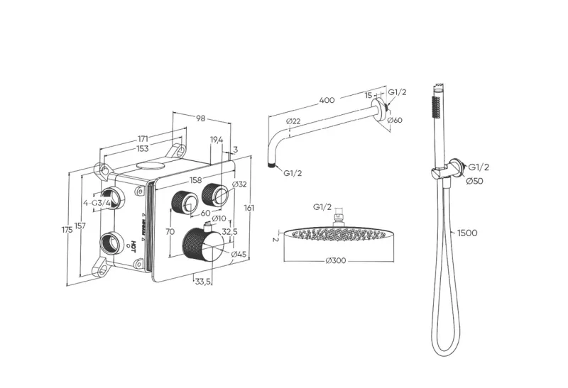 Душевой комплект Milleau Tissage TERMO 2SBIT/801-CR хром