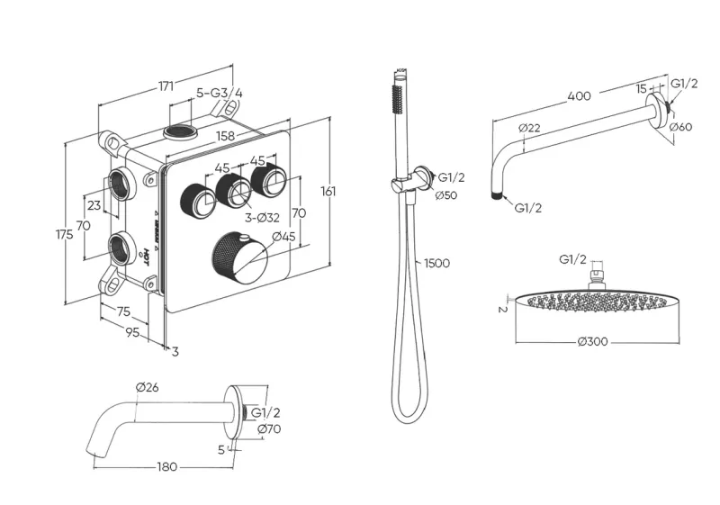 Душевой комплект Milleau Tissage TERMO 3SBIT/801Q-CR хром