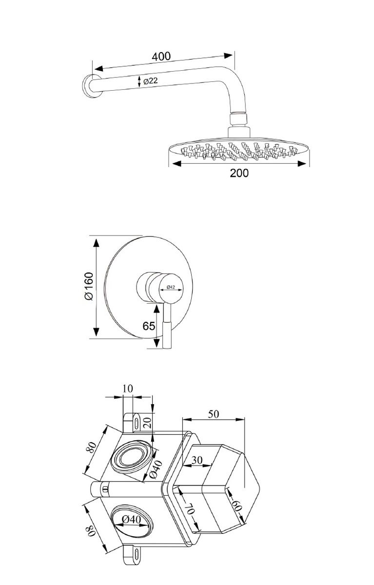 • Размер верхнего душа, см: