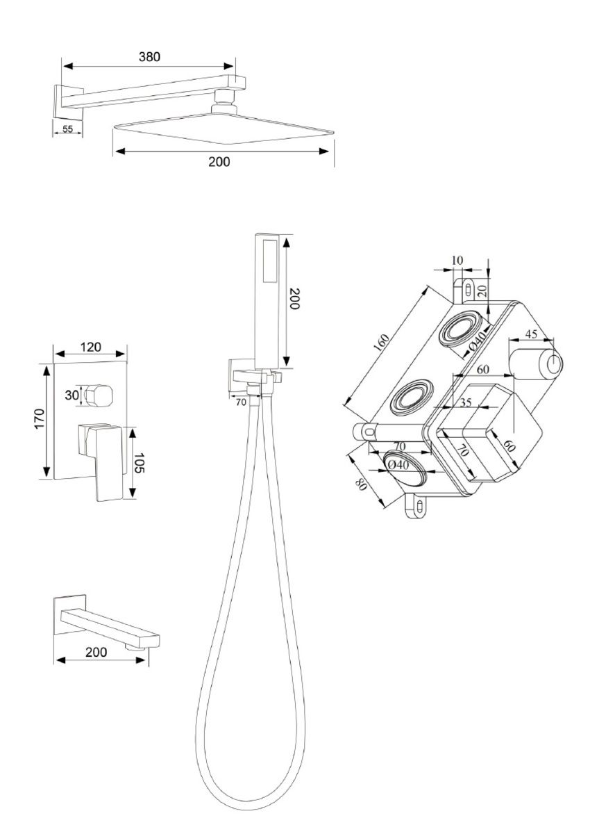 Душевой комплект РМС SUS129-2S нержавеющая сталь