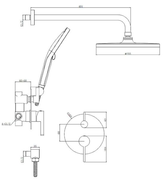 Душевая система встраиваемая Splenka S222.27.05, сатин. Материал: нержавеющая сталь. Управление: однорычажное. Механизм: керамический картридж. Стандарт подводки: G 1/2. Форма верхнего душа: круглая. Диаметр верхнего душа: 255 мм. Длина кронштейна: 401 мм. Количество режимов струи ручного душа: 3. Монтаж: встраиваемый. Излив - функция переключения.