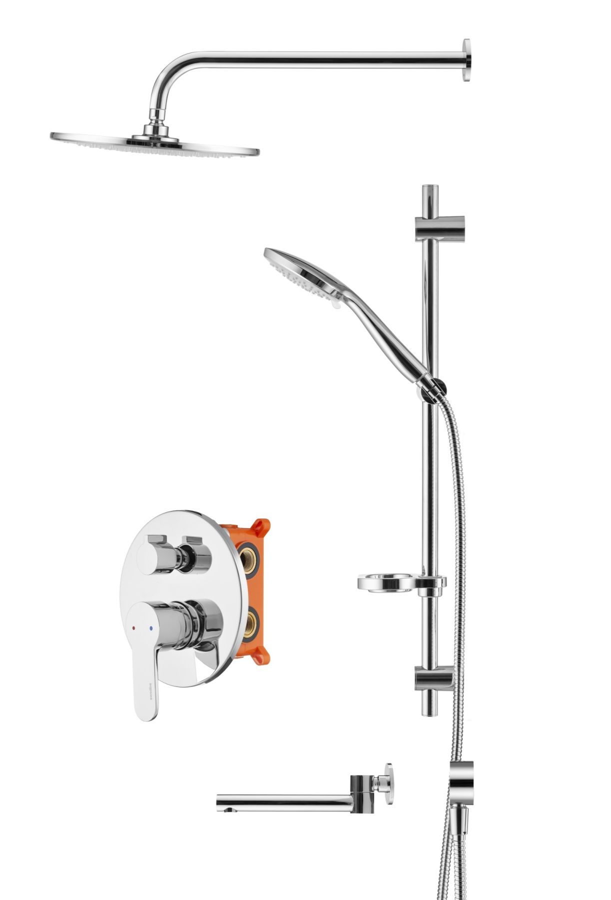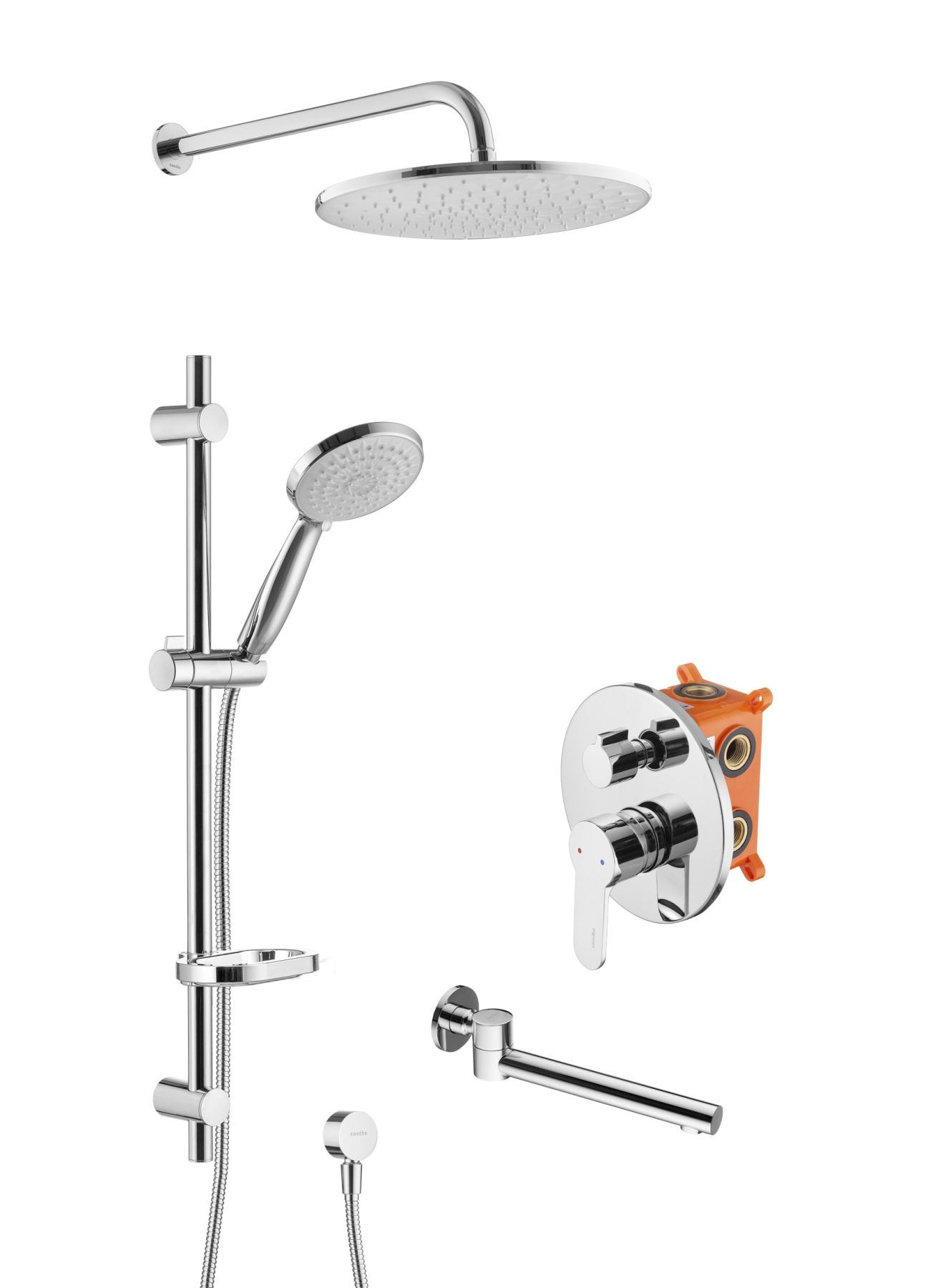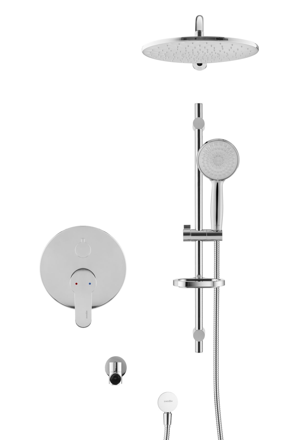 Swedbe Platta 5542 Душевой комплект со встроенным смесителем (с монтажным боксом), верхним душем и поворотным изливом.