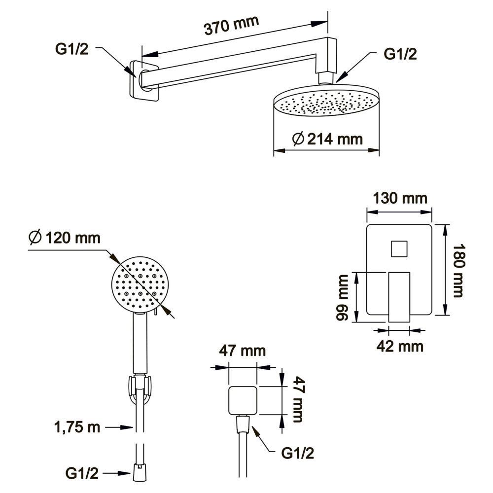 Душевой комплект Swedbe Platta 5554B чёрный