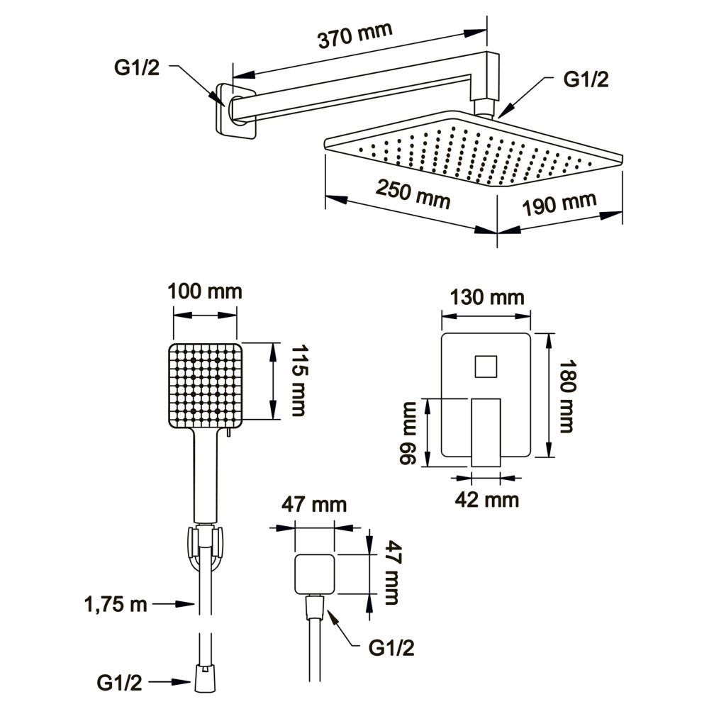 Душевой комплект Swedbe Platta 5555B чёрный