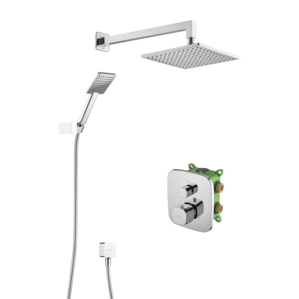 Душевой комплект со встраиваемым термостатическим смесителем на 2 выхода (в монтажном боксе), верхним душем 218х218 мм и лейкой 80х97 мм (1 режим)