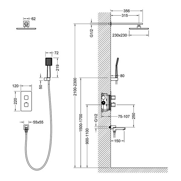 - Смеситель с монтажной коробкой, скрытого монтажа, с термостатом - 1 шт.
