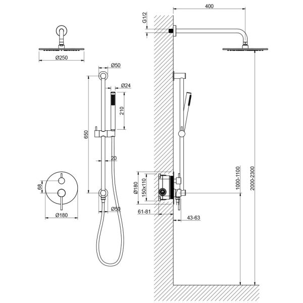 Встраиваемая душевая система Saona 2309, предназначена для монтажа в полой или твердой стене.Основные преимущества встроенной системы: коммуникации, крепления и механизмы спрятаны в стену и видны только декоративные элементы. Установить встроенную систему можно в любом месте. Cтильная стойка из латуни позволяет установить ручную лейку-карандаш на необходимую высоту. Использовать такой смеситель очень удобно, регулировка температуры и напора воды осуществляется одним рычагом. Регулируя напор воды в режиме "тропический душ", можно получить массажное воздействие различной интенсивности. Переключение режимов подачи воды (тропический душ, ручная лейка) осуществляется поворотом керамического дивертора. Сложностей монтажа не возникает при установке элементов душевой системы опытным сантехником.