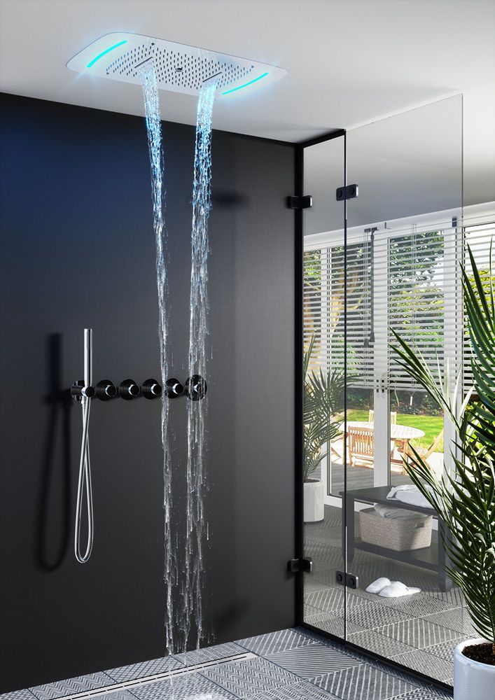 Встраиваемая душевая система с термостатом Timo Saona 2319 относится к премиальному сегменту, предназначена для монтажа в полой или твердой стене. Термостатический картридж поддерживает стабильную температуру воды, обеспечивая максимально комфортные условия для принятия водных процедур. Встроенный потолочный душ большого размера создает имитацию проливного дождя, вода обливает человека целиком. Регулируя напор воды можно получить массажное воздействие, что очень полезно для здоровья. Основные преимущества встроенной системы: элегантный внешний вид, все коммуникации и крепления спрятаны в стену и потолок, снаружи видны только декоративные элементы. Установить встроенную систему можно в любом месте. Сложностей монтажа не возникает при установке элементов душевой системы опытным сантехником. Внимательно изучите инструкцию по монтажу и эксплуатации.