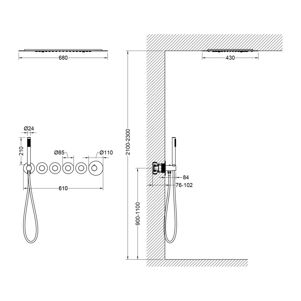 Размер верхнего душа, см:68