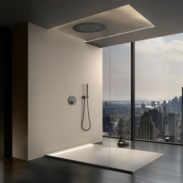 "Черное золото"- неизменно эффектный и привлекающий внимание цвет. Приглушенный мягкий оттенок черного, подчеркнет форму раковины или цвет мебели.Встраиваемая душевая система с термостатом Timo Saona 2370 относится к премиальному сегменту, предназначена для монтажа в полой или твердой стене. Термостатический картридж поддерживает стабильную температуру воды, обеспечивая максимально комфортные условия для принятия водных процедур. Встроенный потолочный душ большого размера создает имитацию проливного дождя, вода обливает человека целиком. Основные преимущества встроенной системы: элегантный внешний вид, все коммуникации и крепления спрятаны в стену и потолок, снаружи видны только декоративные элементы. Установить встроенную систему можно в любом месте. Использовать такой смеситель очень удобно, регулировка температуры воды осуществляется ручкой термостата (расположена снизу). Режим "тропический душ" и увеличение напора осуществляется поворотом ручки дивертора (расположена сверху) влево. Для переключения в режим "ручной душ" верните ручку дивертора в исходное положение 12:00 (смеситель выключен), а затем поверните вправо. Увеличение напора воды осуществляется поворотом ручки вправо. Сложностей монтажа не возникает при установке элементов душевой системы опытным сантехником. Внимательно изучите инструкцию по монтажу и эксплуатации. Цвет "черное золото" не капризен в уходе, на нем менее заметны загрязнения и мелкие царапины.