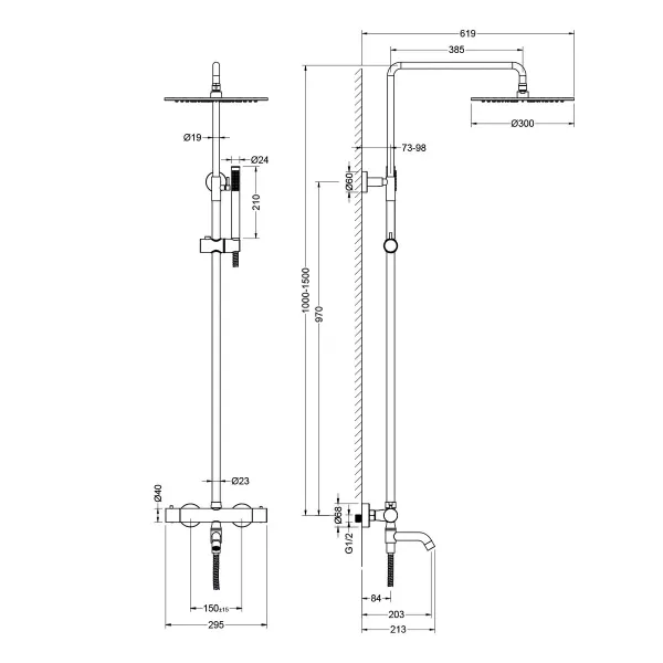 Душевая система настенная с круглой лейкой (латунь). Цвет "розовое золото" является маркером ... Подробнее