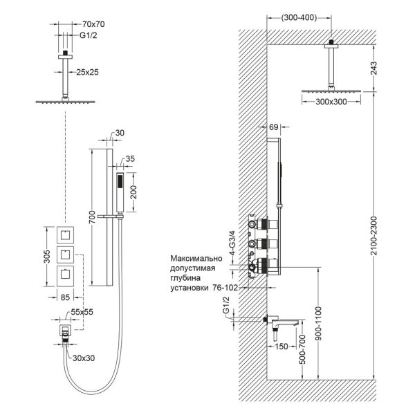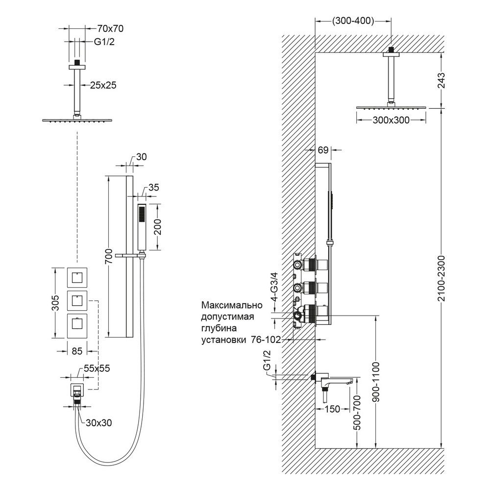 • Встраиваемый блок управления душевой системой - 1 шт.