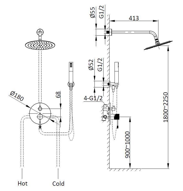 • Размер верхнего душа, см: