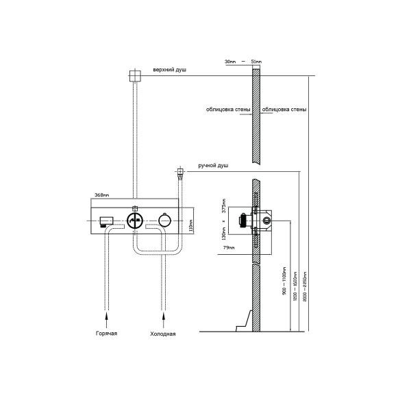 • Размер ручного душа, см: