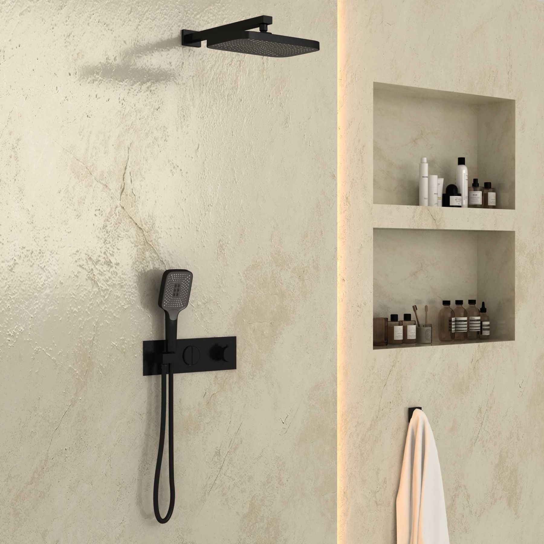 Душевой комплект Vincea VSFW-422T1MB встраиваемый, термостатический, двухрежимный, черный купить