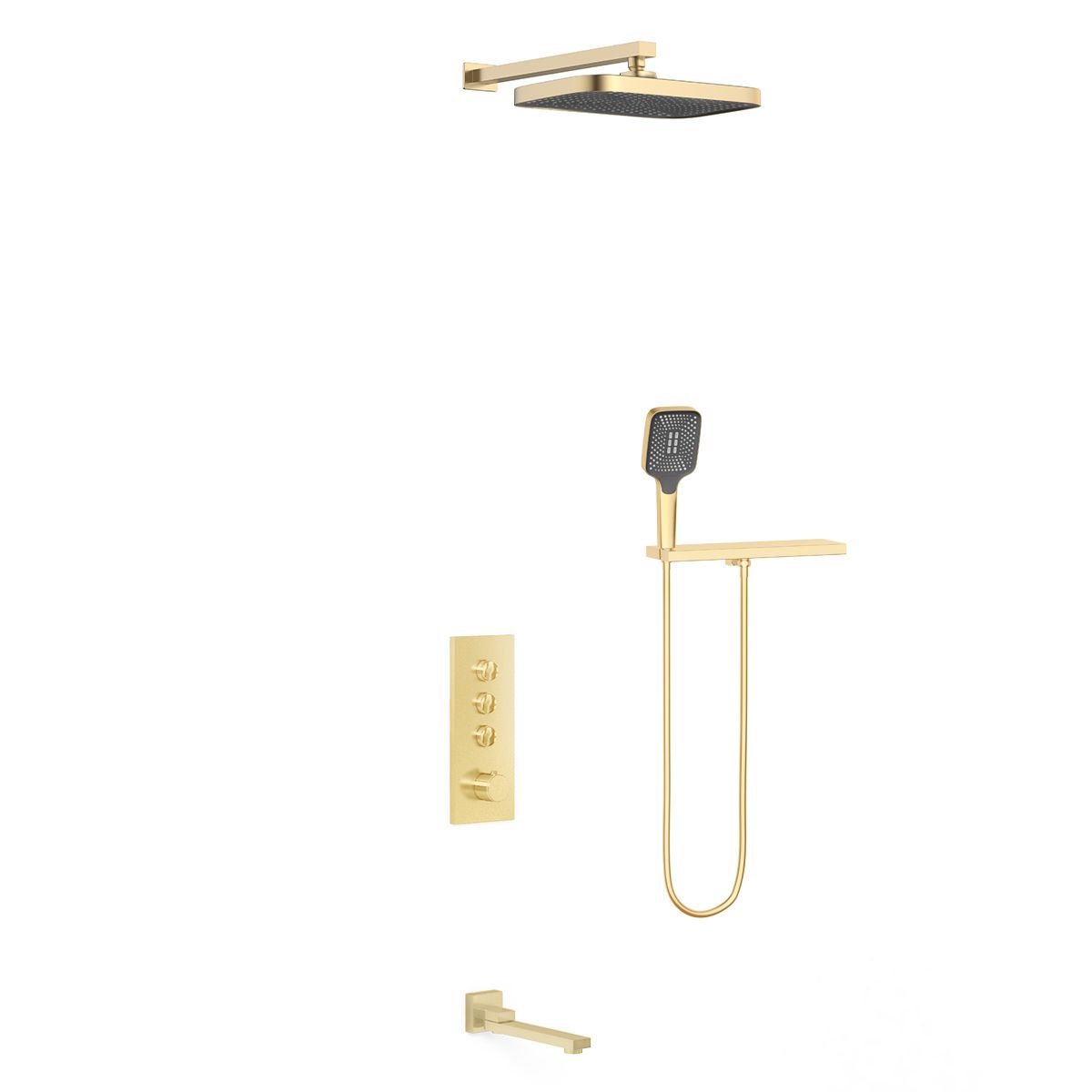 Душевой комплект Vincea VSFW-431T1RBG встраиваемый, термостатический, трехрежимный, брашированное золото