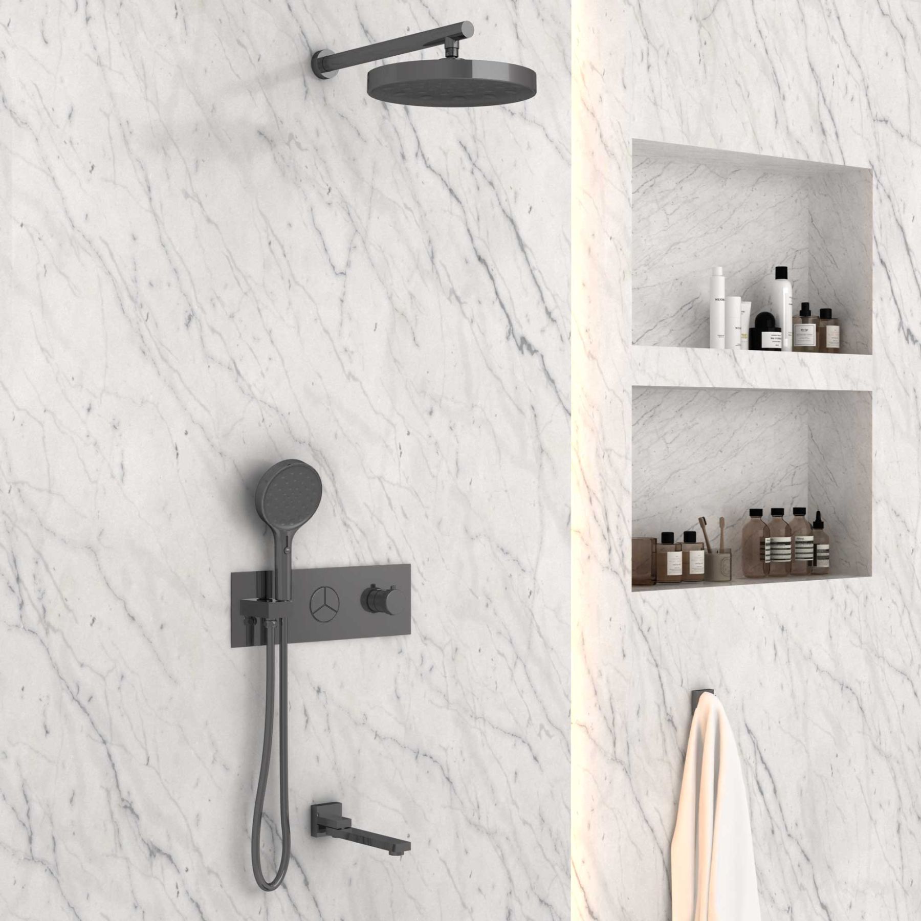 Душевой комплект Vincea VSFW-432TI2GM встраиваемый, трехрежимный, термостатический, вороненая сталь купить
