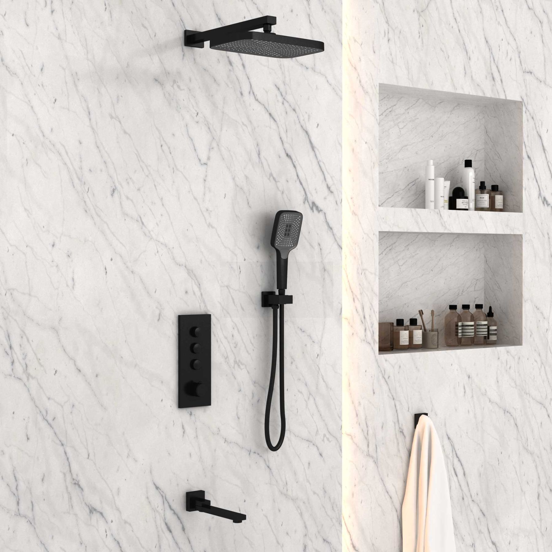 Душевой комплект Vincea VSFW-433T1MB встраиваемый, термостатический, трехрежимный, черный купить