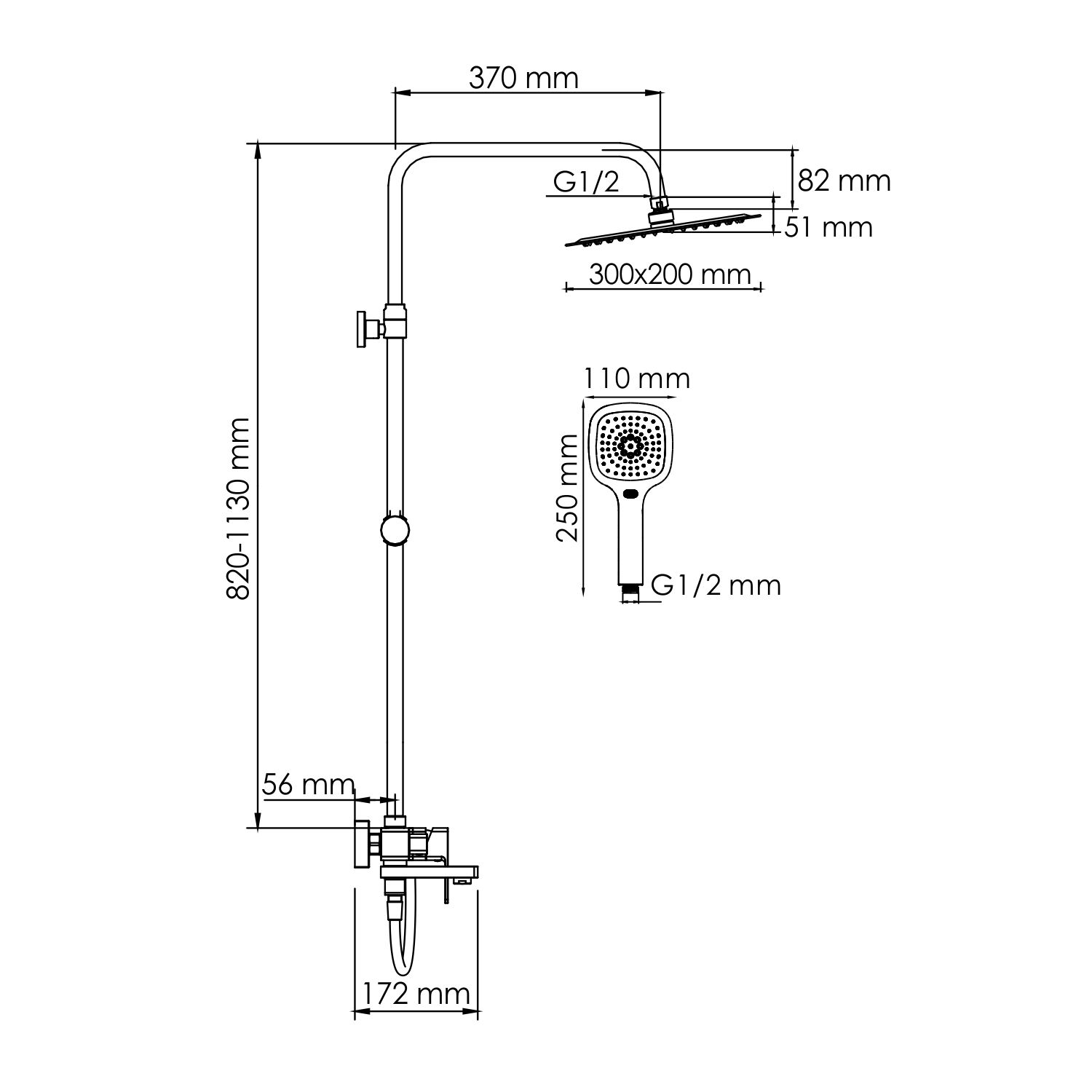 Стойка для душа, Ø 22 мм регулируемая по высоте