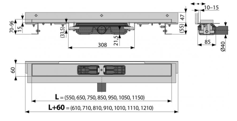 - Диаметр сливной трубы 40 мм