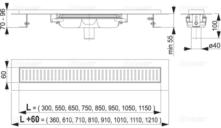 Душевой лоток AlcaPlast с порогами для перфорированной решетки 95см хром APZ1101-950 купить