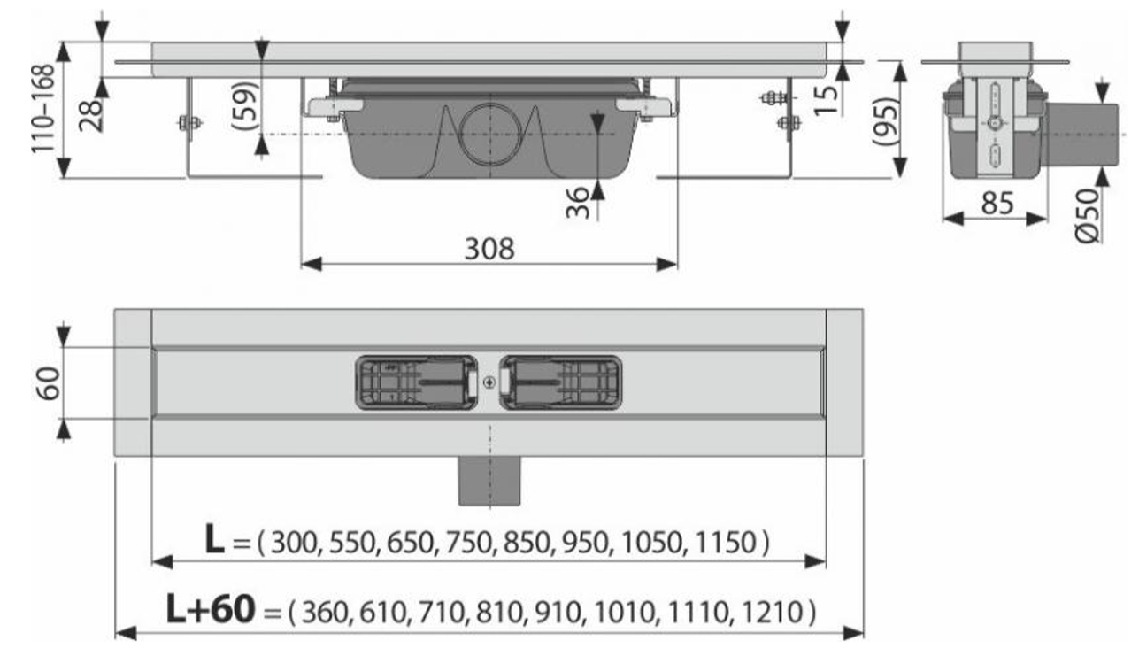 Вручную легко чистящийся сифон, вплоть до сточной трубы.