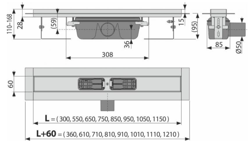 Душевой лоток AlcaPlast с порогами для цельной решетки 30см хром APZ6-300 купить