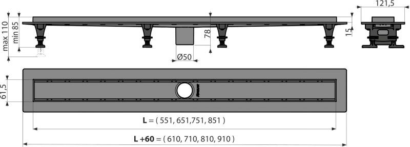 Душевой лоток AlcaPlast с порогами из нержавеющей стали для перфорированной решетки или решетки под кладку плитки без гидрозатвора 75см хром APZ2012-750