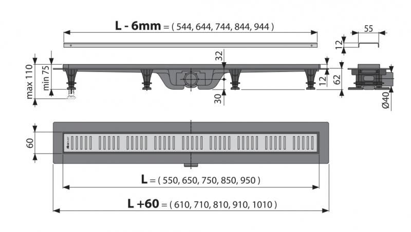 - Общая высота монтажа (H2) 75 – 110 мм