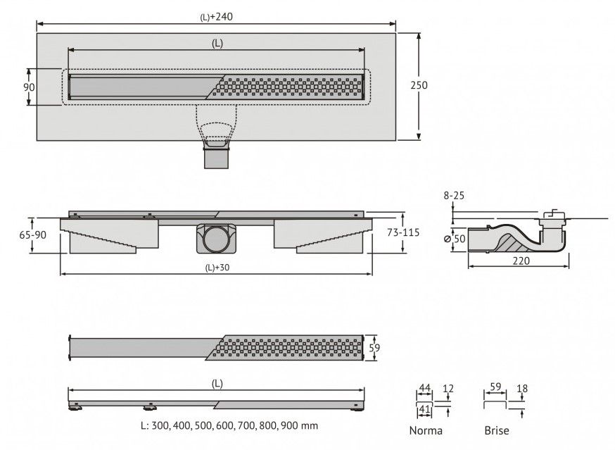Душевой желоб Berges C1 Norma это современное функциональное решение для оборудования водоотвода во внутренних помещениях. Выполнен из высококачественной нержавеющей стали AISI 304, что обеспечивает жесткую фиксацию в основании пола и длительное использование.Изоляционная мембрана, интегрированная в стальной корпус, гарантирует непроницаемость и совместима со всеми изоляционными материалами.Усовершенствованная система настройки высоты изделия позволяет выполнить легкую регулировку под заданную толщину покрытия, с минимальной высотой монтажа (заливки) - 65мм. Поворотный сифон с гидрозатвором имеет высокую пропускную способность 48 л/мин и оригинальную самопромывную конструкцию.Съемная сетка для волос (грязеуловитель) предотвращает попадание мусора в сифон и позволяет легко проводить очистку желоба. Благодаря возможности переворота решетки и вклейки плитки, вы ощутите цельность пространства в вашей ванной комнате и душевой.